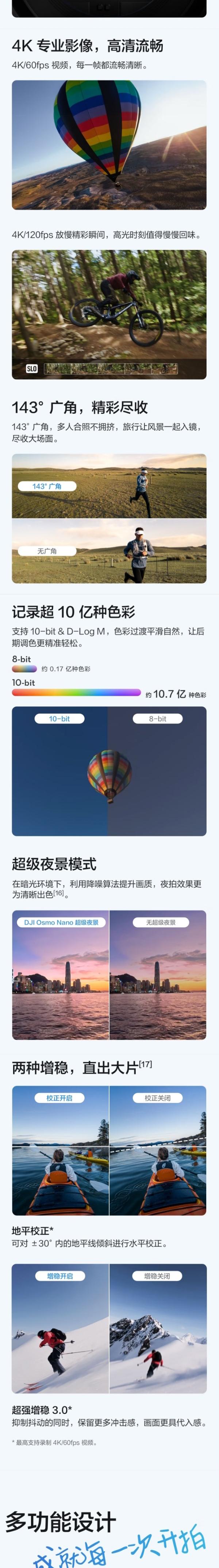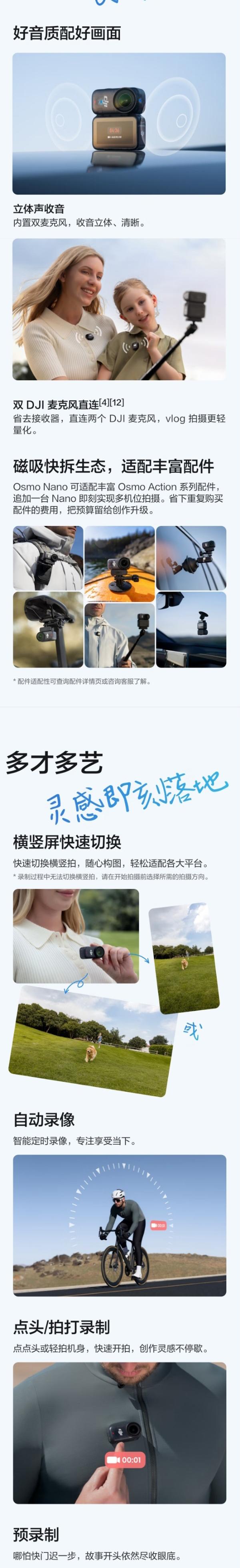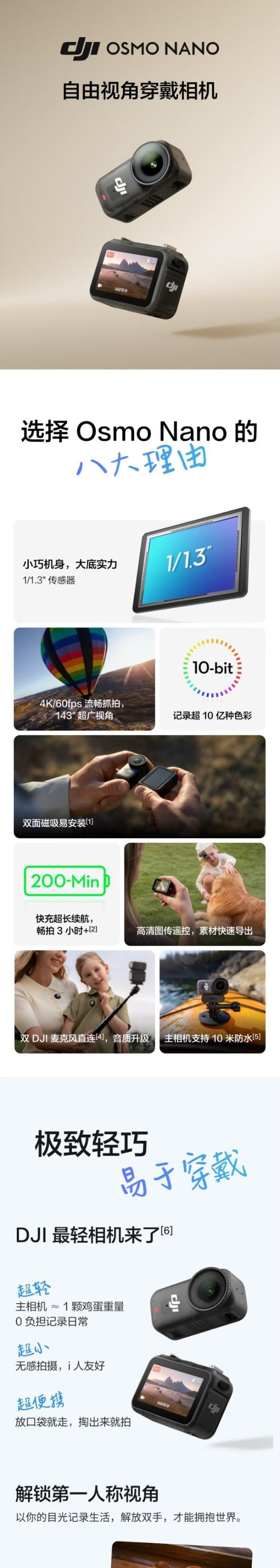 大疆 DJI Osmo Nano 自由视角穿戴Vlog相机 标准套装(128GB版)