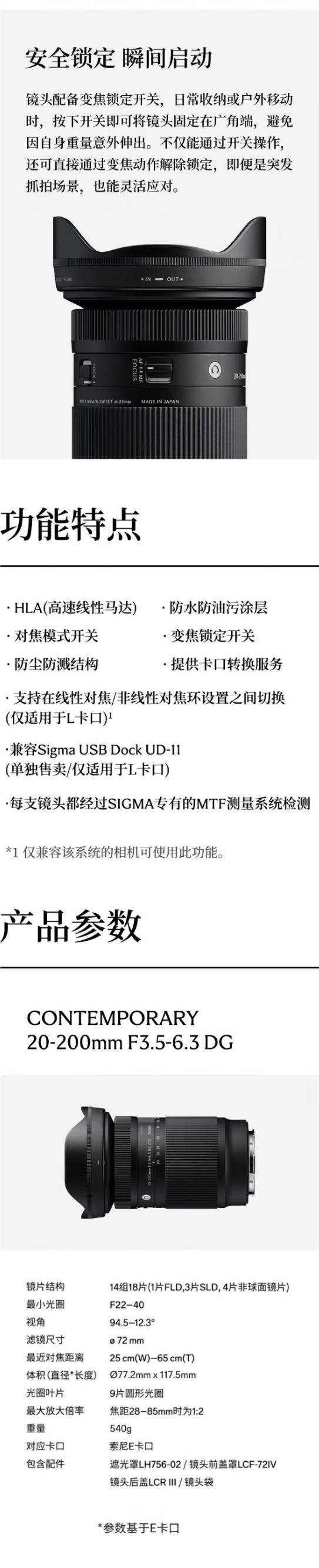 L口-适马 20-200mm F3.5-6.3 DG 全画幅远摄大变焦镜头