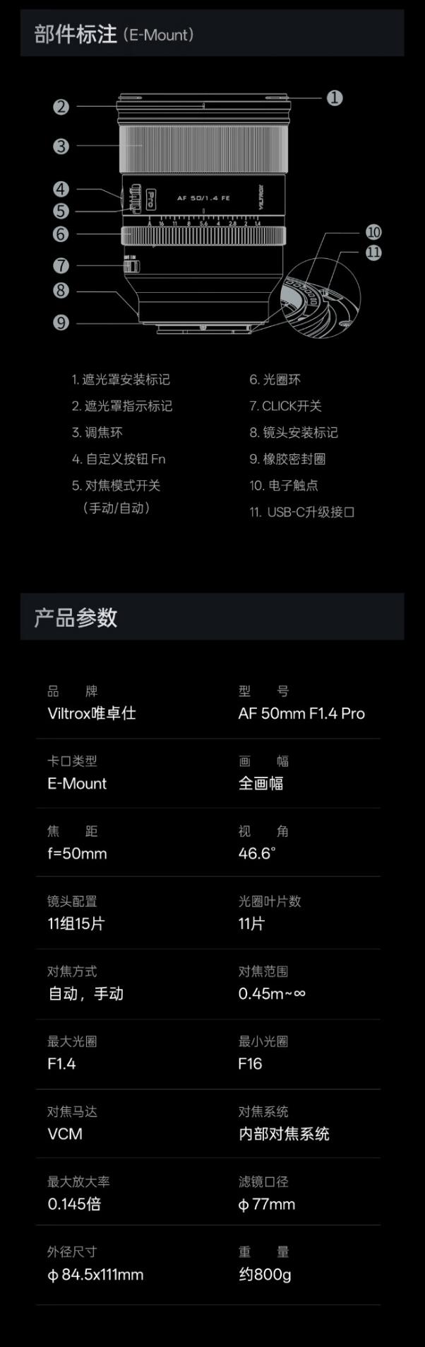 E口-唯卓仕 50mm F1.4 Pro 全画幅标准定焦人像镜头