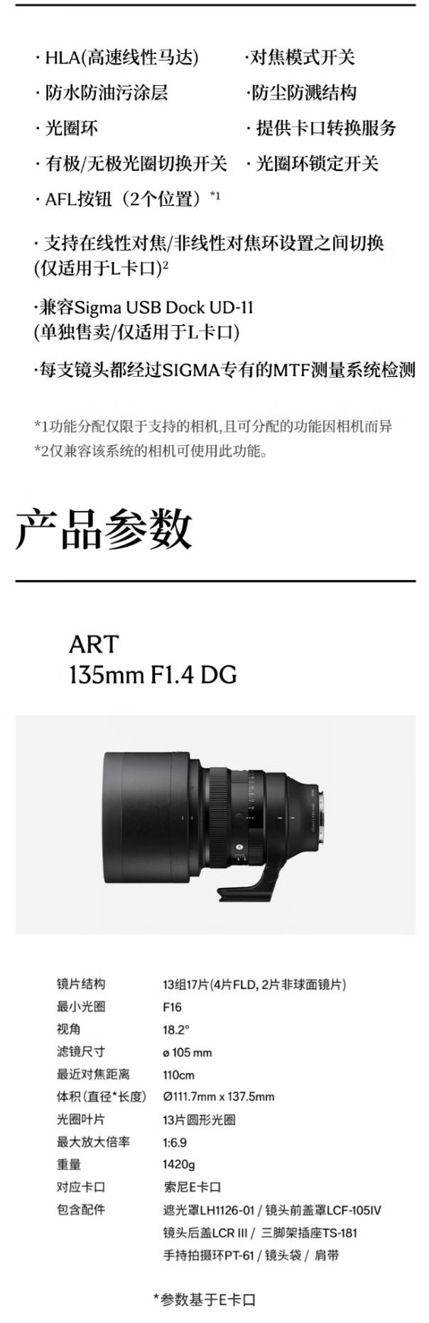 E口-适马 135mm F1.4 DG 全画幅大光圈定焦镜头