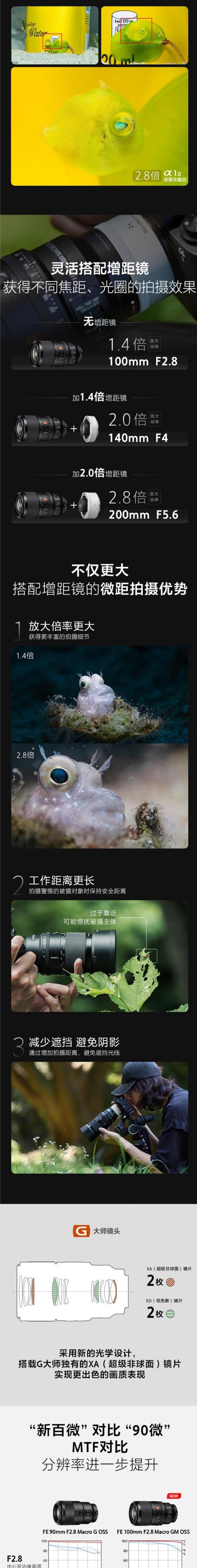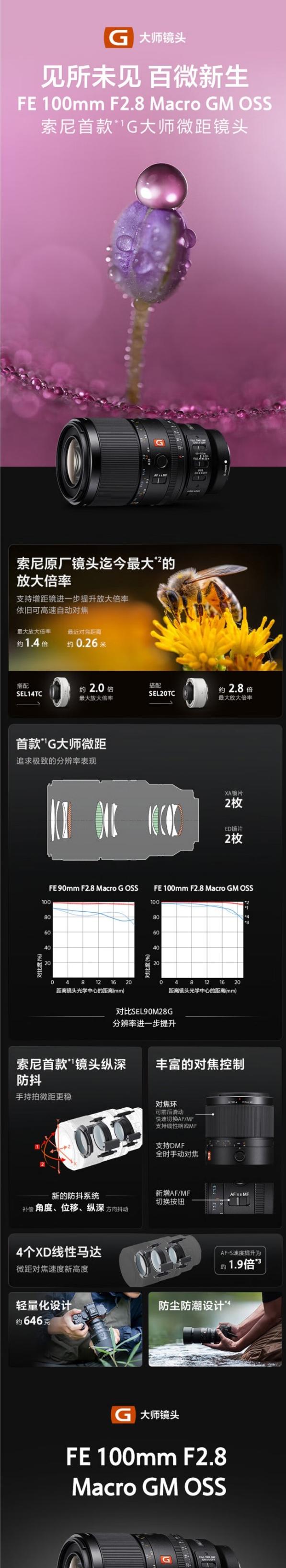 索尼 100mm F2.8 Macro GM OSS 全画幅微距定焦大光圈镜头