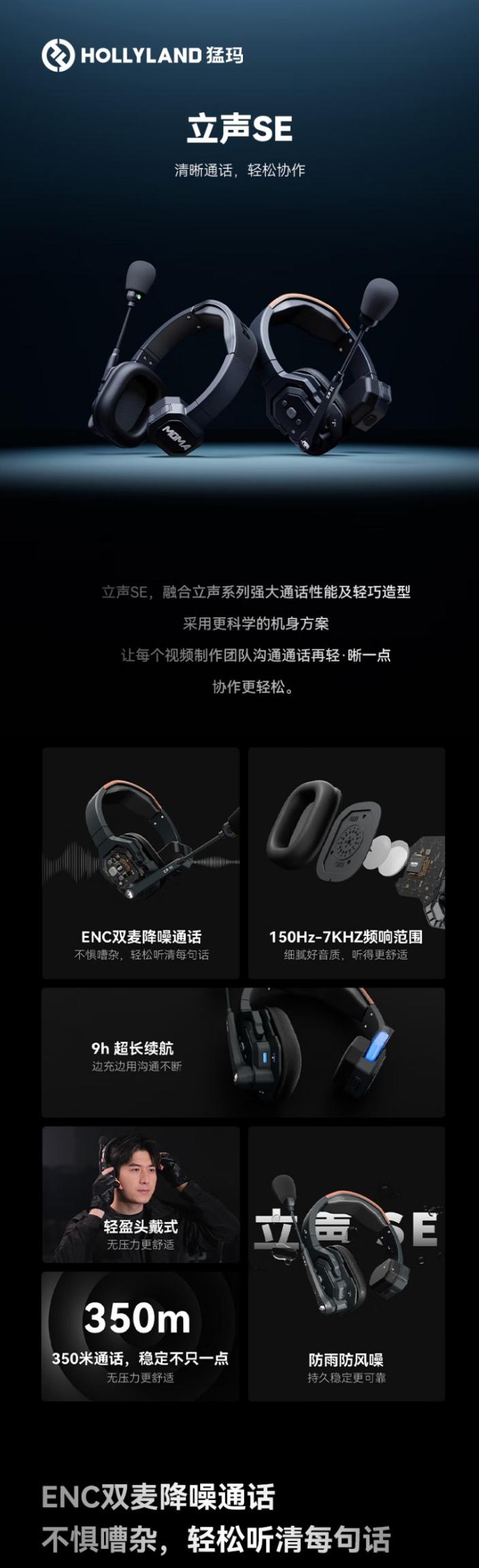 猛玛立声SE 头戴一体式导播通话麦克风 无主站一拖四
